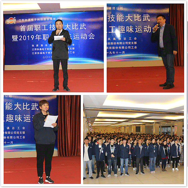 在深入开展“不忘初心、牢记使命”主题教育之际,为增强企业职工的获得感、幸福感、安全感,由凤凰镇总工会主办,公司党支部及工会承办的“尊时凯龙人生就博科技首届职工技能大比武暨2019年职工趣味运动会”于11月15日在公司隆重举行。凤凰镇总工会主席徐海亲临开幕式现场并作重要讲话,公司党支部书记徐一明宣布活动开幕。开幕式由公司工会主席张红霞主持。