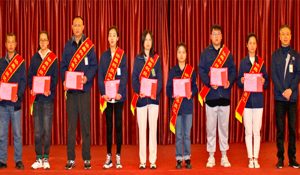 会上,公司董事长顾挺先生和研发中心张亮总监分别为2023年第一季度和2022年第四季度先进集体、优秀干部及员工颁发流动红旗、荣誉证书及奖金。
